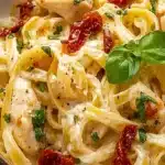 Fettuccine Alfredo with Chicken and Sundried Tomatoes combines comfort and freshness for a meal that’s sure to delight. The rich, creamy sauce balanced with the tangy sundried tomatoes makes every bite a pleasure. So why not gather your ingredients and try this recipe for your next dinner? Share your cooking experience with friends and family; they will love this delicious dish just as much as you will!