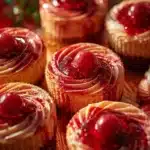 Serve these delightful mini cheesecakes chilled, directly from the refrigerator. They’re perfect for holiday parties, festive gatherings, or as a treat for friends and family. Pair with a cup of hot cocoa or coffee for a cozy dessert experience. You can also set up a mini dessert table where guests can grab their own cheesecake, adding a fun touch to your holiday celebrations.