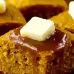 A delightful pumpkin cornbread topped with rich cinnamon honey butter, perfect for fall meals and cozy snacking.